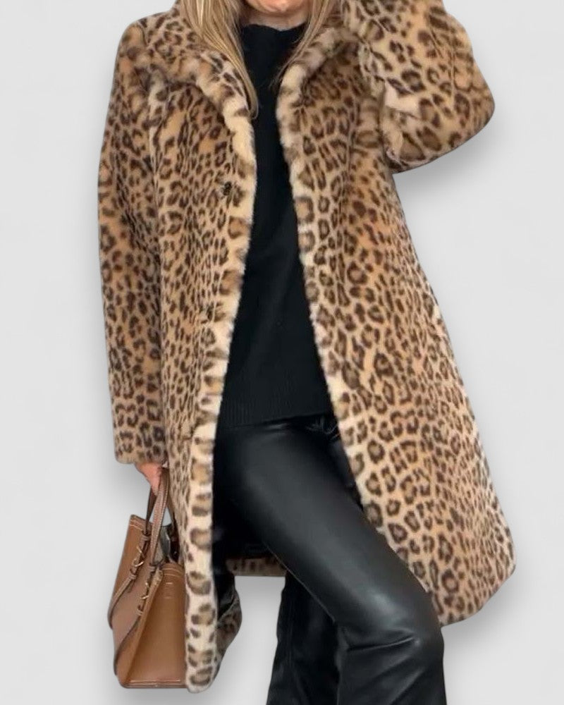 LEIA - Casaco Comprido e Macio Com Padrão Leopardo