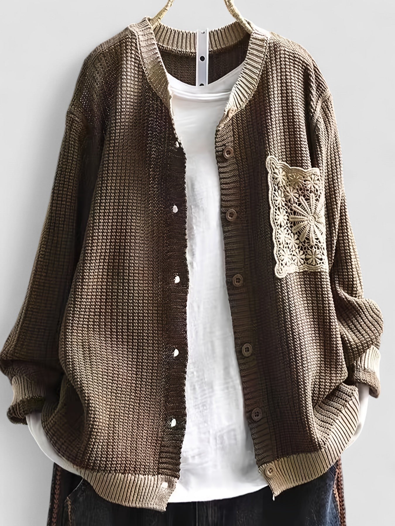 O Casaco em Malha com Bolsos Marcelina foi concebido a pensar no equilíbrio entre elegância e conforto. Com textura acolhedora em malha e detalhe delicado nos bolsos inspirado em renda, esta peça acrescenta um toque único mantendo-o estilosa de forma simples durante as estações mais frescas. Perfeito para dias casuais, encontros ou sobreposição sobre as suas peças favoritas.