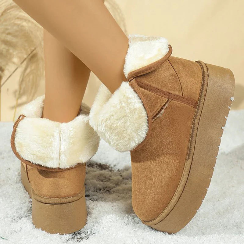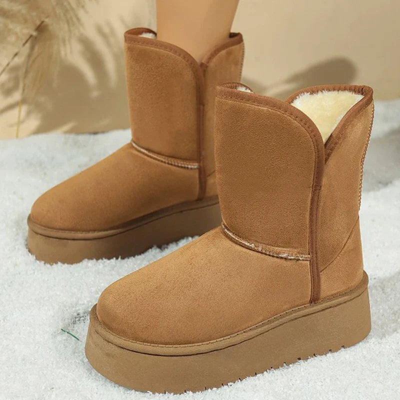 As Botas Joselin foram criadas para mulheres que valorizam elegância e bem-estar mesmo nos dias mais frios. O seu design em camurça falsa, com interior de pelúcia macia, envolve os pés num conforto quente e leve. A sola plataforma antiderrapante garante estabilidade em qualquer superfície, enquanto o modelo slip-on facilita o calçar, tornando-as ideais para o dia a dia de inverno.
