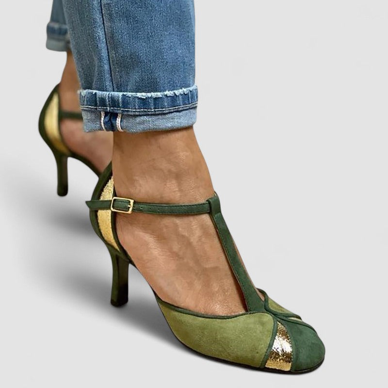 Taviana | Escarpins em patchwork com tira em T e biqueira fechada